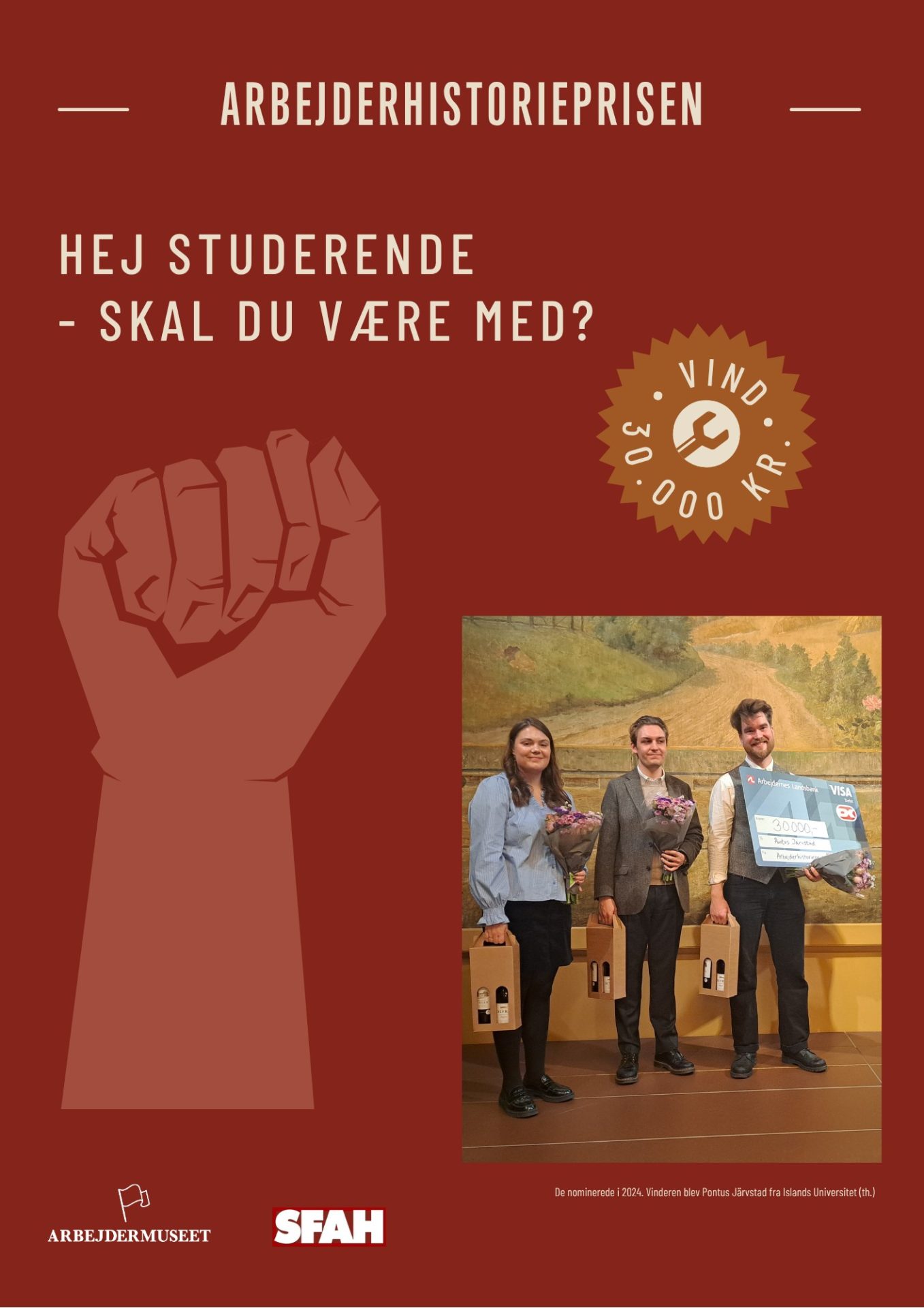 Arbejdermuseet og Selskabet for Arbejderhistorie (SFAH) uddeler hvert år Arbejderhistorieprisen på 30.000 kr.